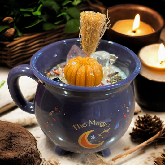 Bougie chaudron "sorcière blanche", bougie d'intention, bougie sorcière