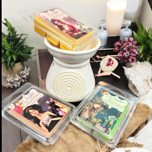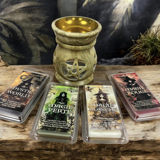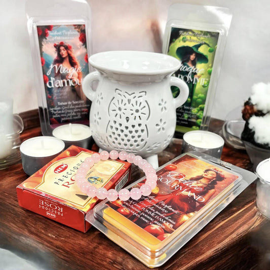 Coffret de fondants de cire parfumés " sortilèges d'ambiance", fondants parfumés, brûleur à fondants