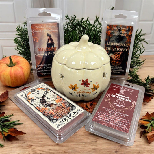 coffret d'automne, coffret de fondants parfumés, brûleur à cire citrouille, fondants parfumés automne, magic automn