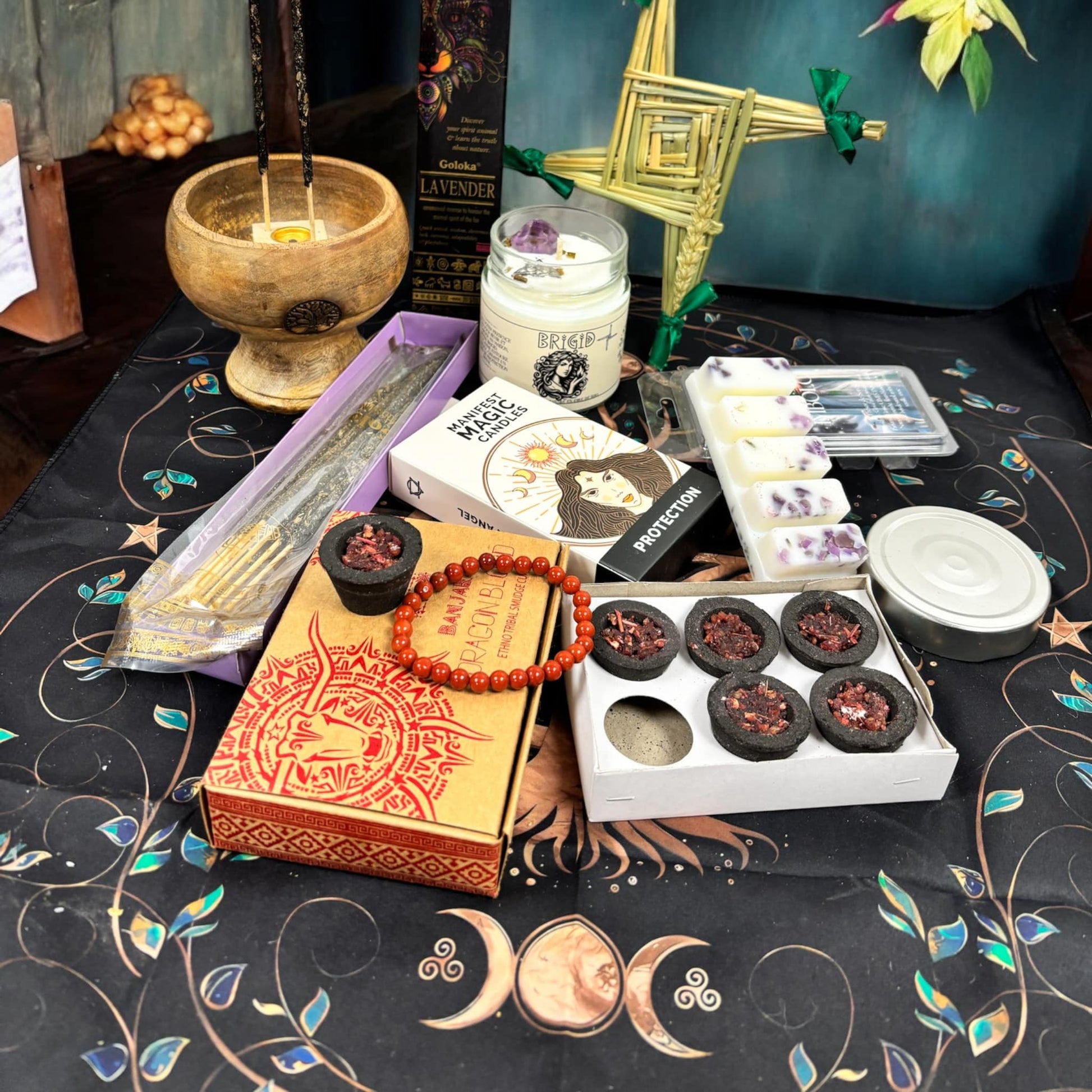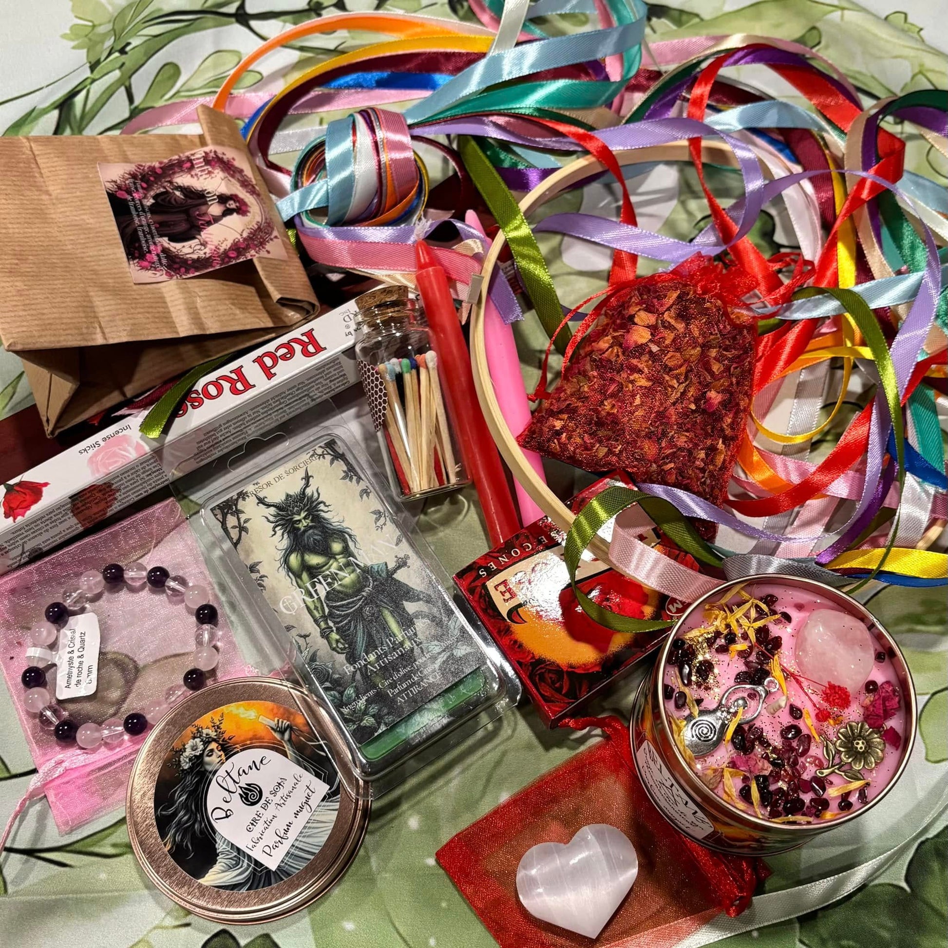 Les thèmes suivent la Roue de l’Année et les cycles naturels, pour que chaque box ait une véritable cohérence spirituelle. Les créations sont le plus possible artisanales et authentiques, fabriquées avec passion et intention.