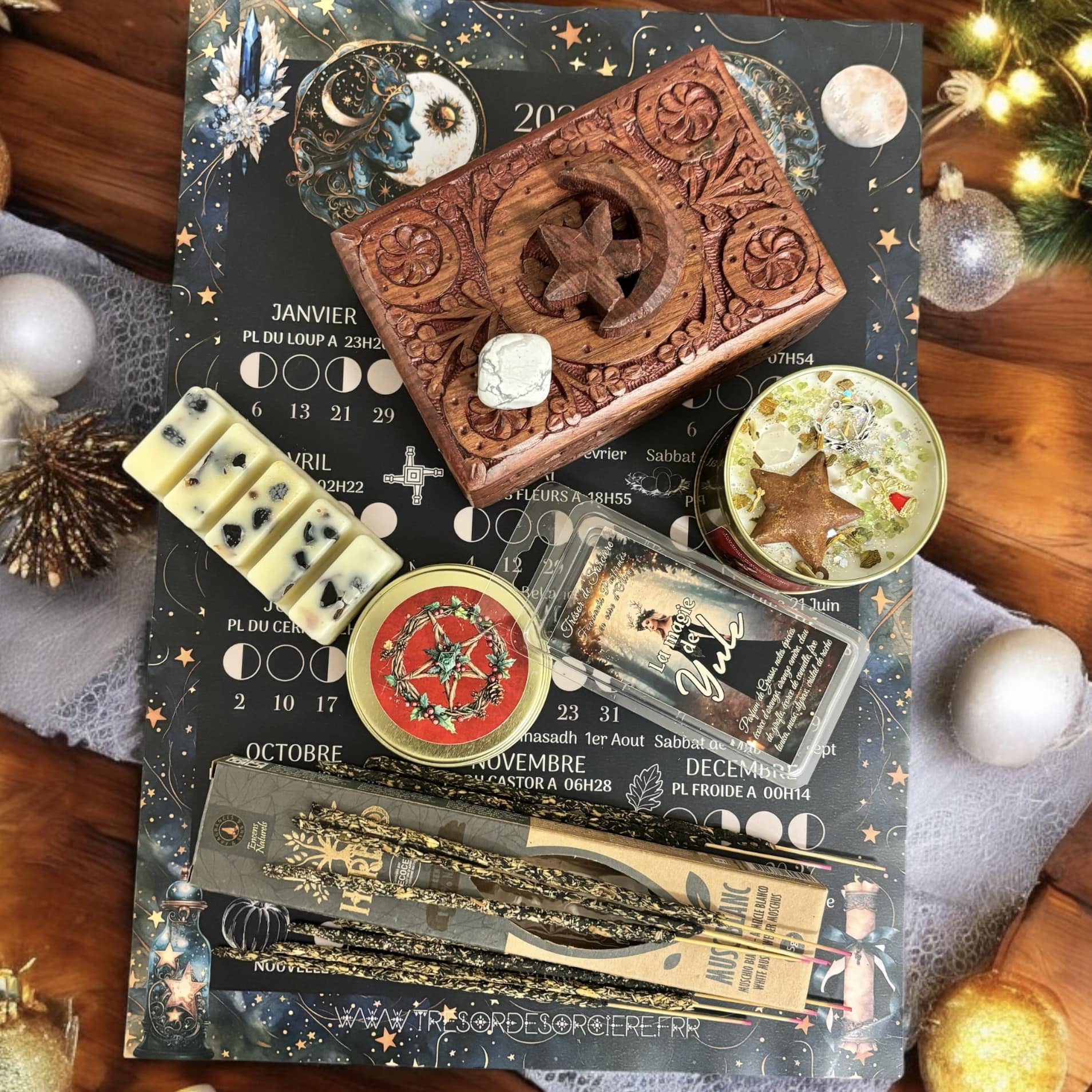 Avec l'abonnement 6 mois à notre box spirituelle , tu t'accordes un chemin initiatique , un fil d'or qui relie chaque saison, chaque sabbat, chaque moment sacré à ton bien-être profond.
