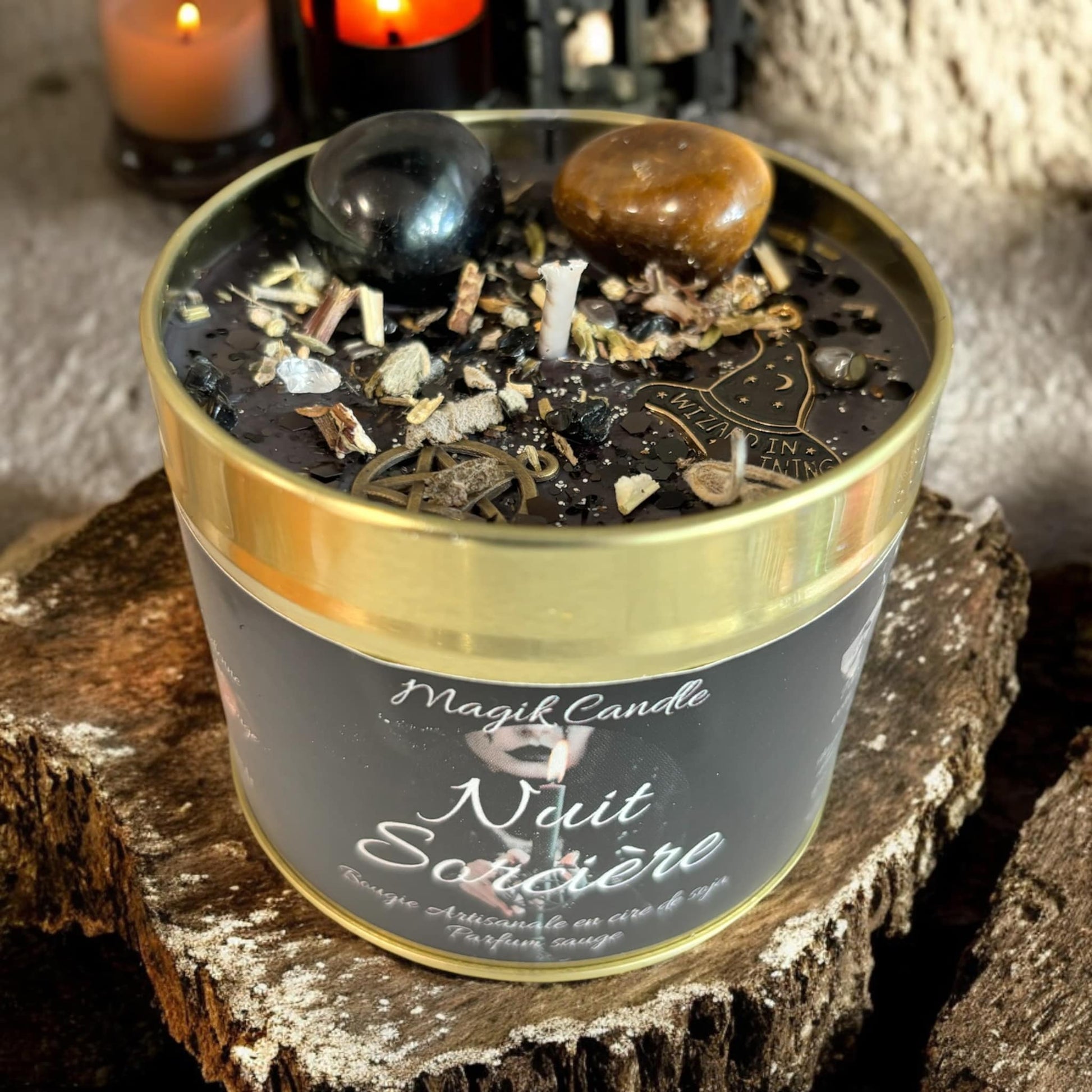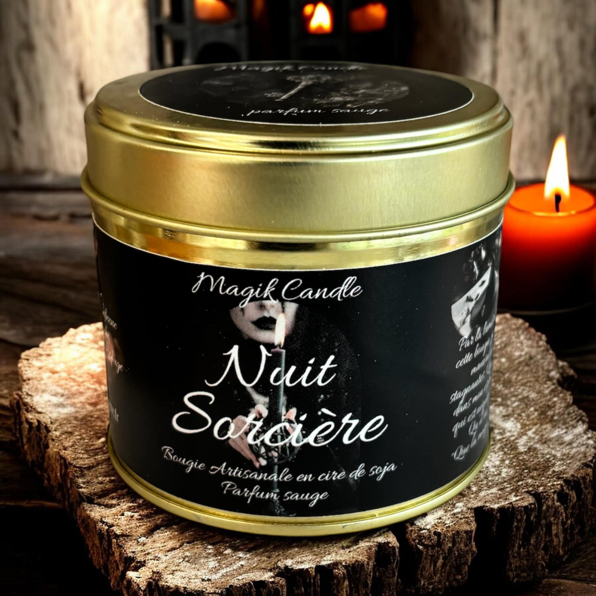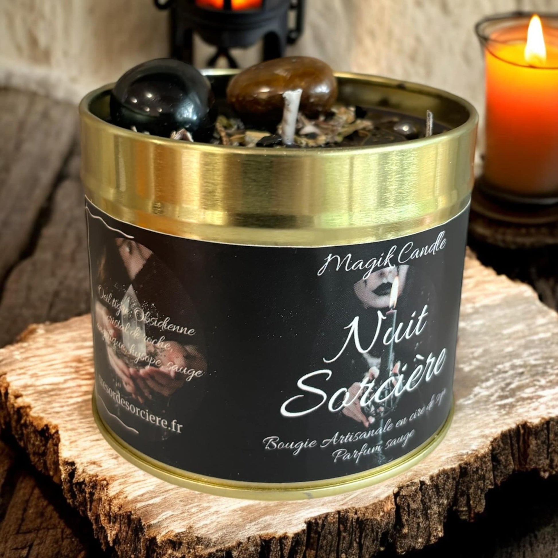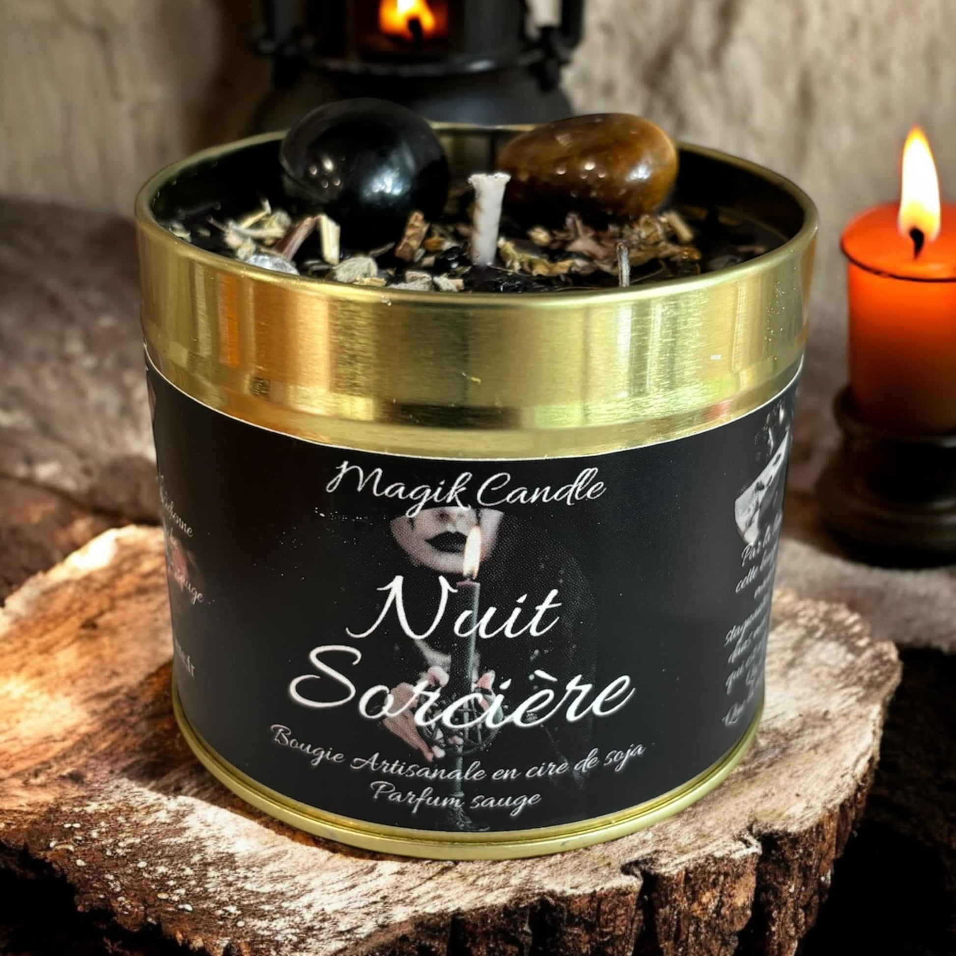 La bougie nuit sorcière est une bougie de protection pour dégager les mauvaises énergies. La cire a été mélangée au parfum pendant une pleine lune pour produire de bonnes manifestations et actions.
