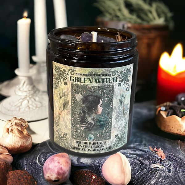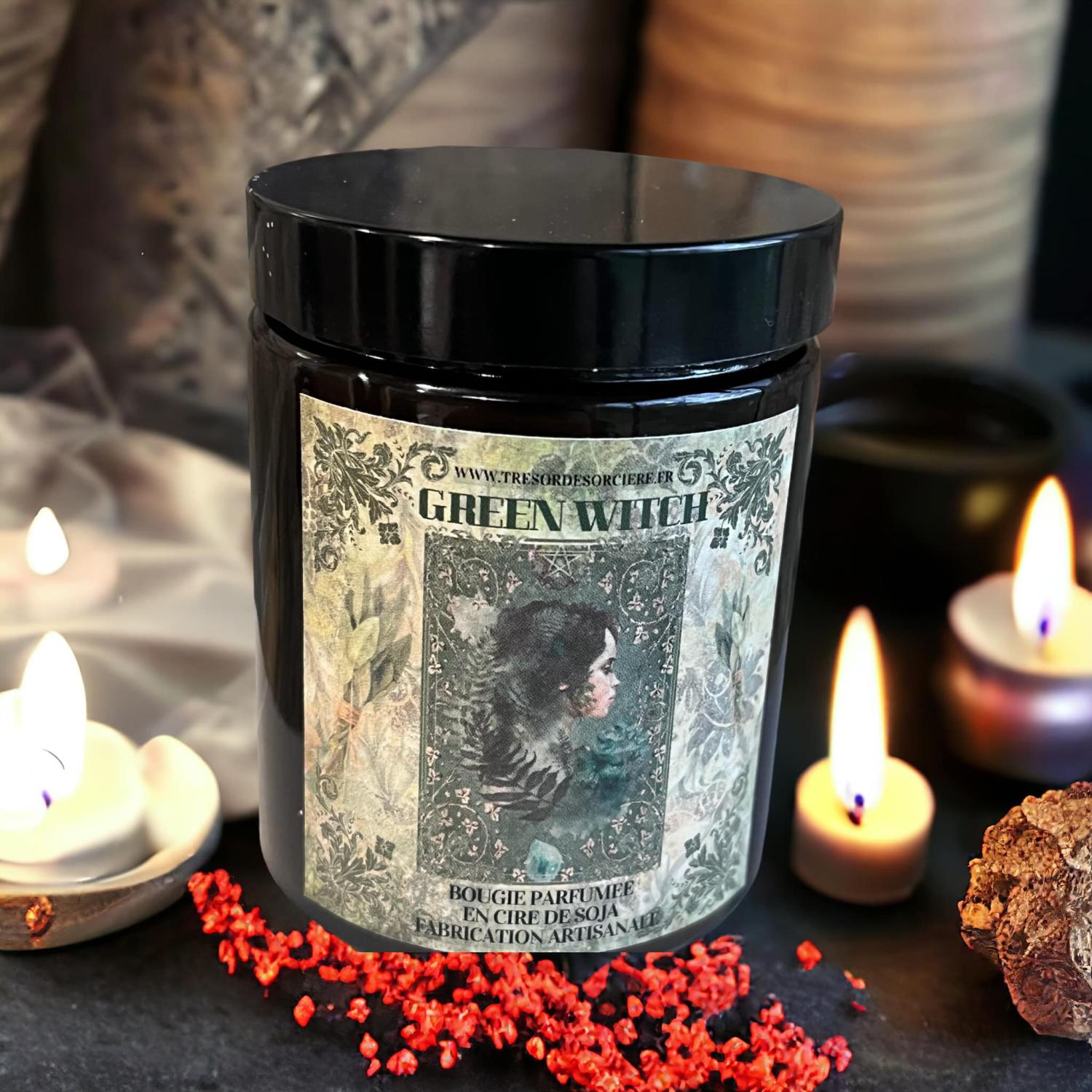 Bougie "Green witch", bougie sorcière, bougie d'intention