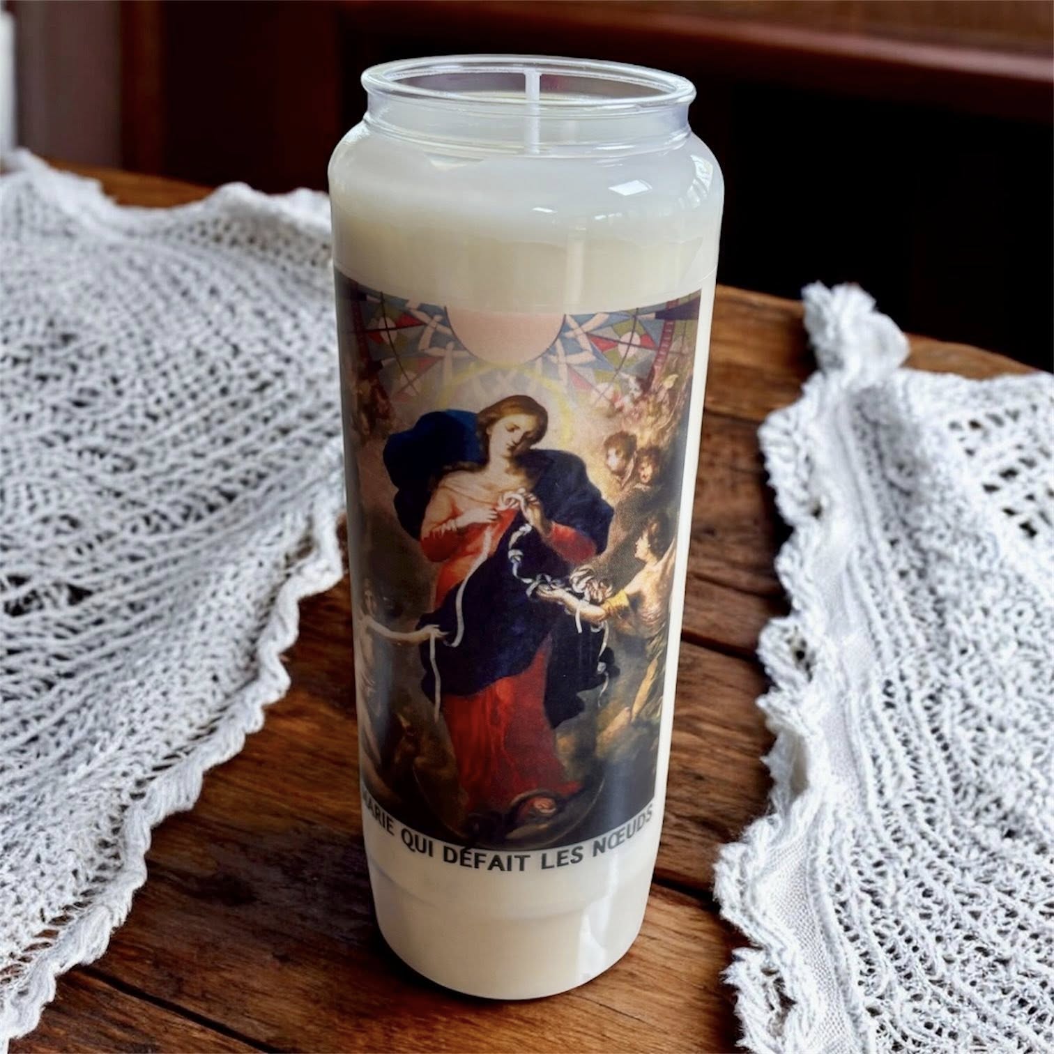 La bougie de neuvaine de Marie qui défait les nœuds est profondément symbolique : elle parle de délivrance, de confiance et de libération intérieure. Allume cette bougie pendant neuf jours consécutifs, dans le calme.
