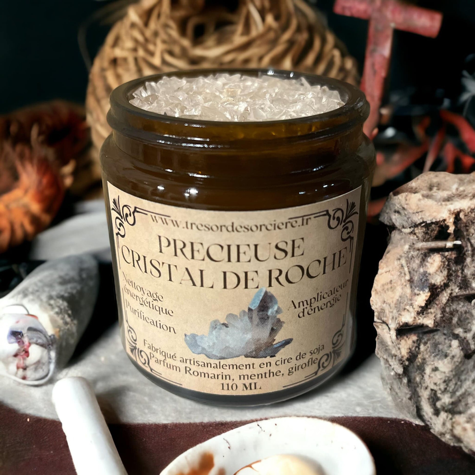 Bougie précieuse cristal de roche, bougie purification, bougie sorcière