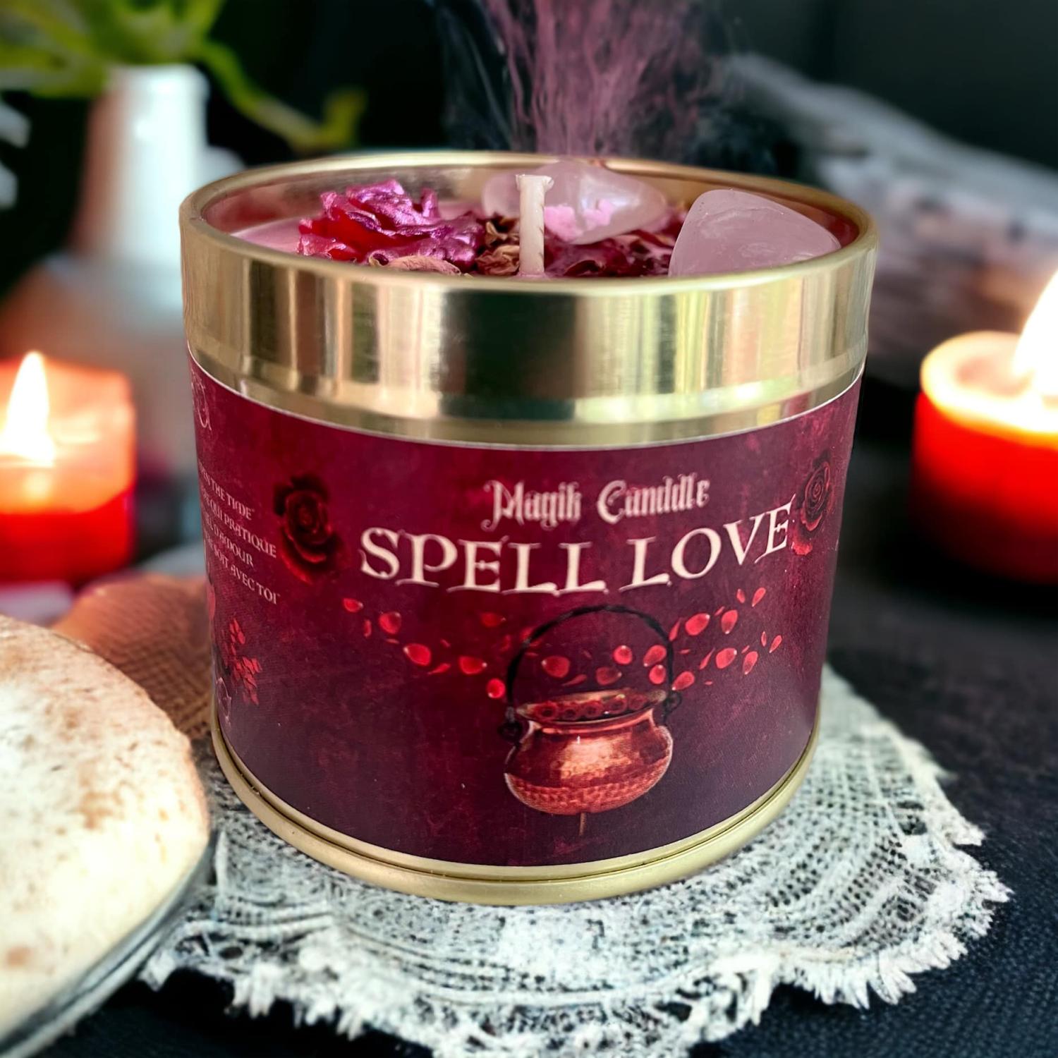 Bougie "Spell Love" Bougie en cire de soja de la gamme "once upon a time". La bougie Spell Love est une bougie pour aider a créer une ambiance d'attirance romantique. Une séduisante bougie rose vif au délicat parfum de rose.