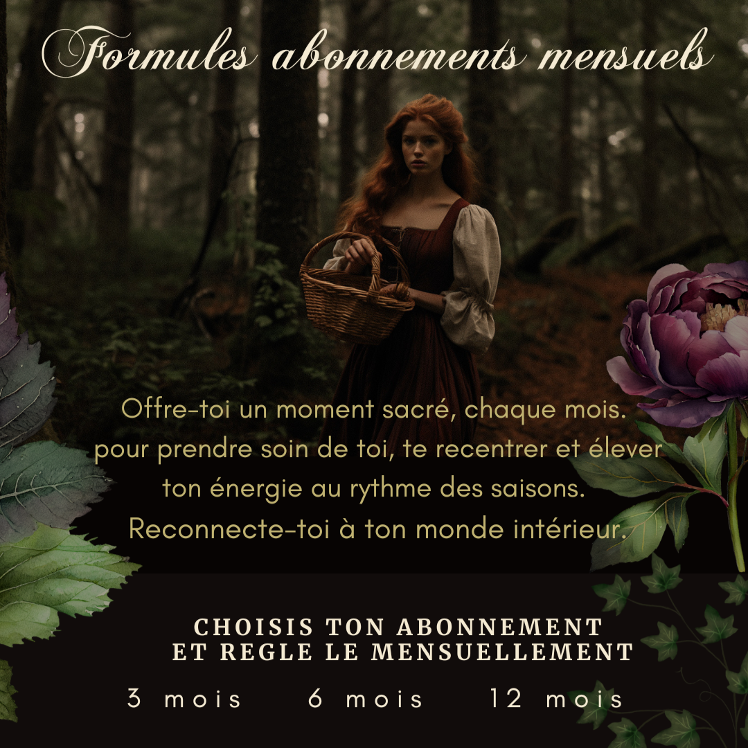 Alignée aux sabbats, aux saisons, à la pratique magique, elle t’accompagne au rythme de la Nature.