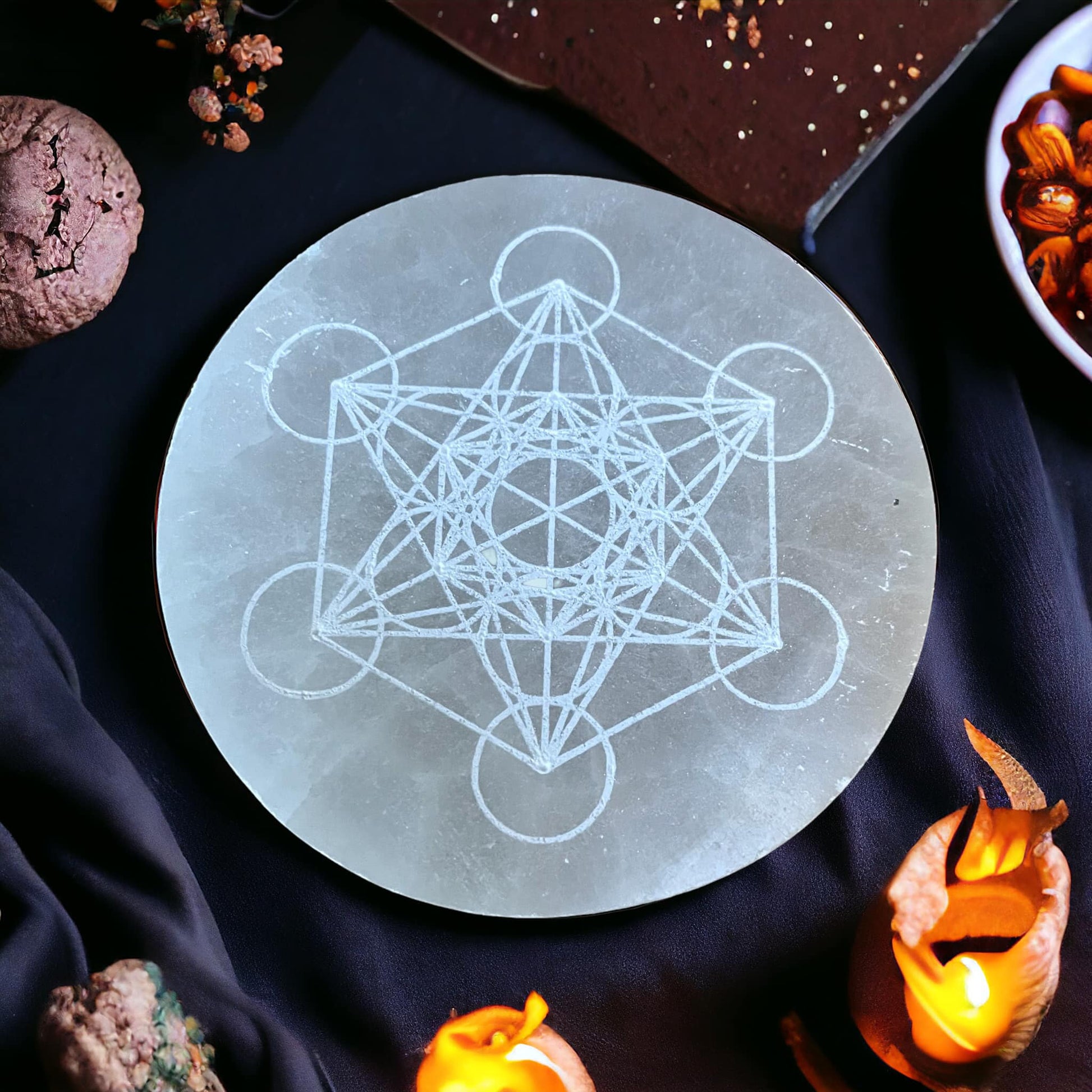 Cercle de sélénite métatron, plaque de rechargement sélénite