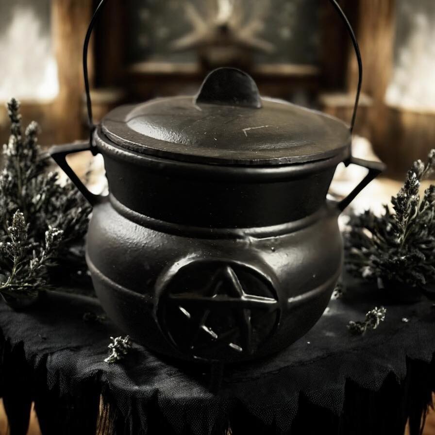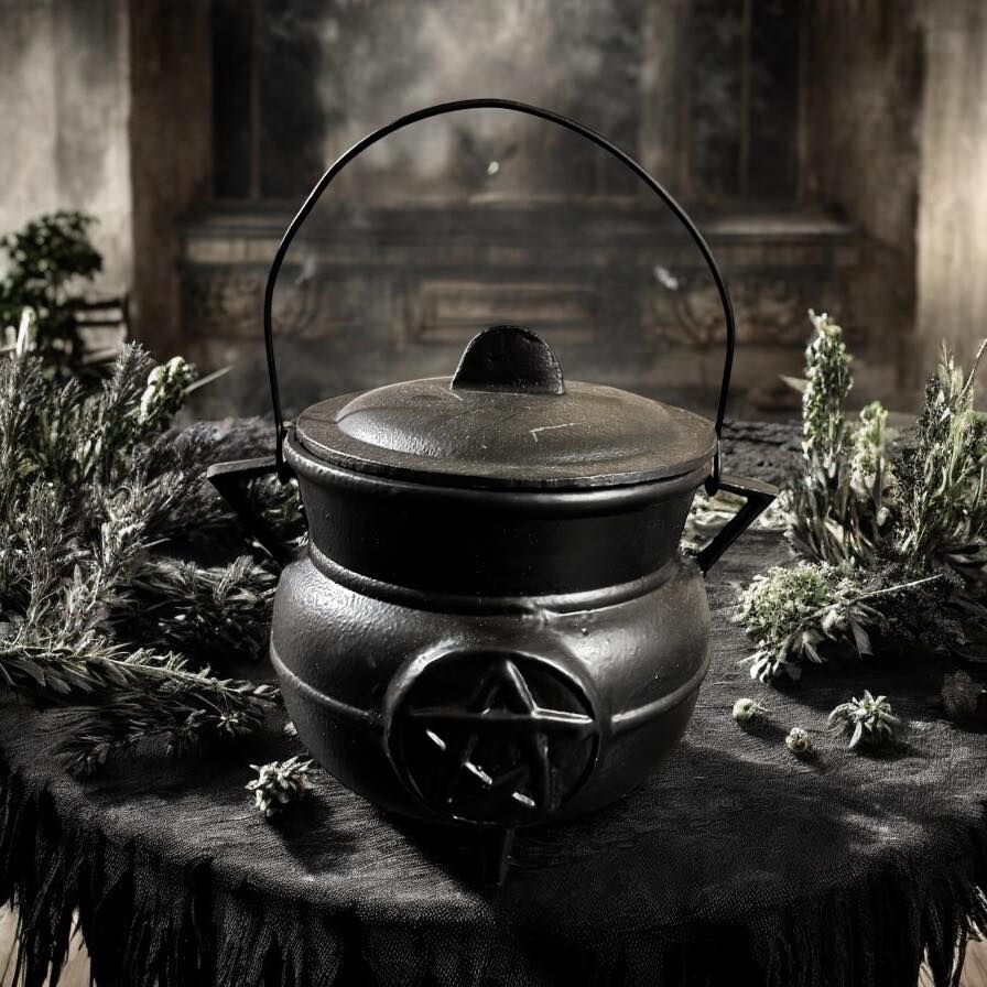 Un format de chaudron très pratique pour vos rituels . Chaudron en fonte motif "pentacle" de 23 X 17 cm pour brûler vos encens plantes et pour vos préparations magiques . l'indispensable chaudron de vos rituels et surtout l'outil que chaque sorcière se doit de possèder.