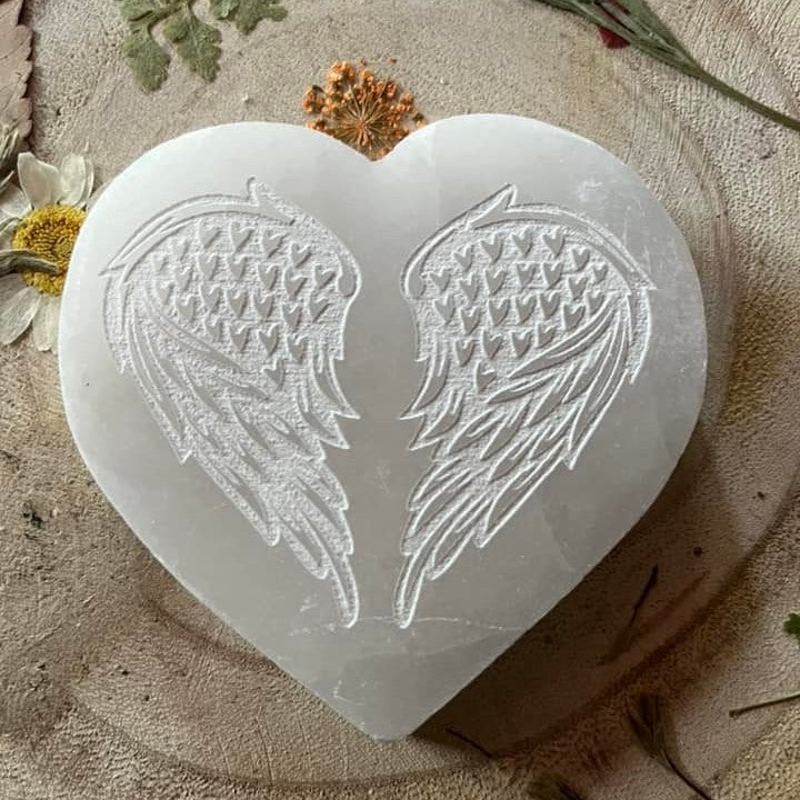 Joli cœur de sélénite d'environ 6cm