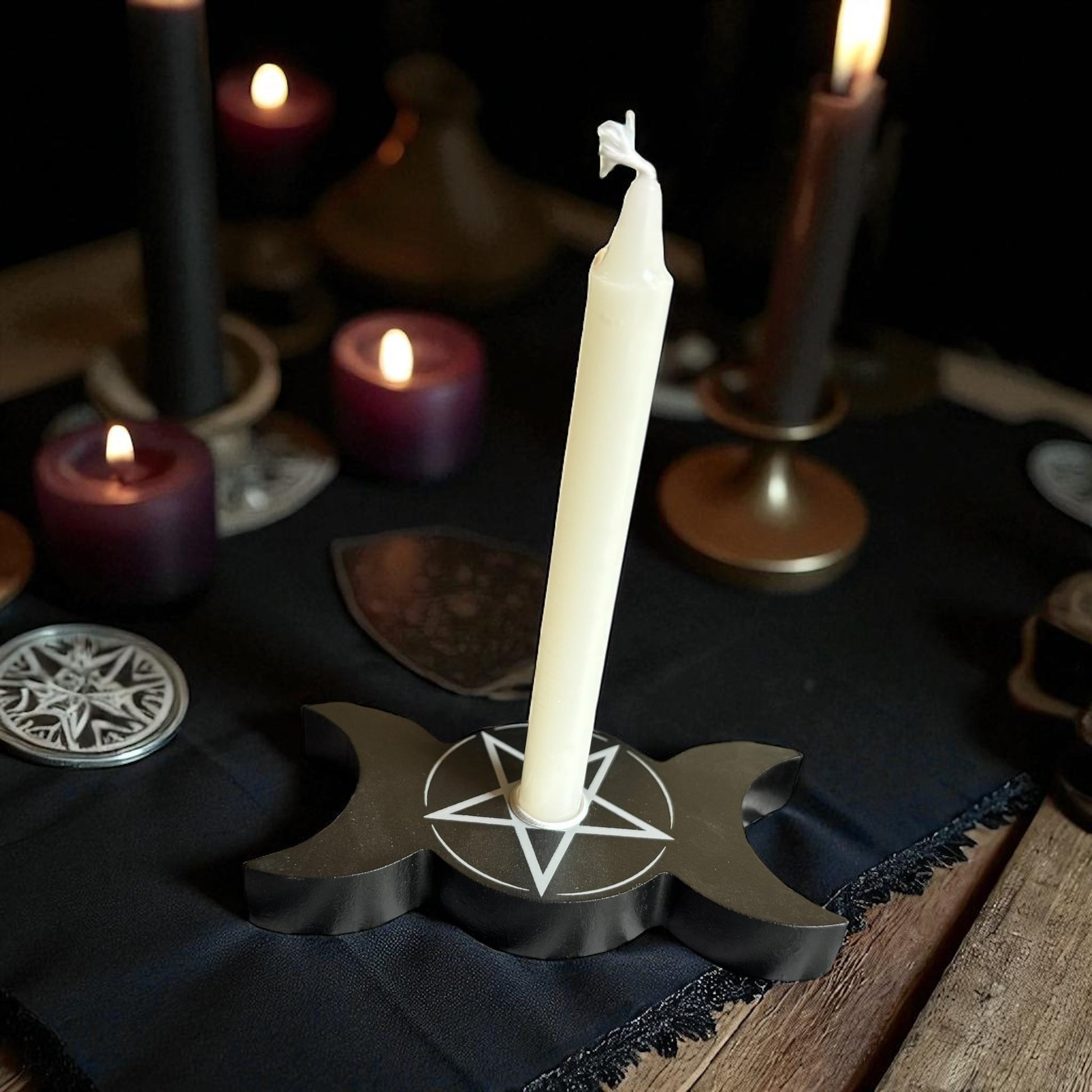 - 1 bougeoir noir triple lune spécial bougies rituelles