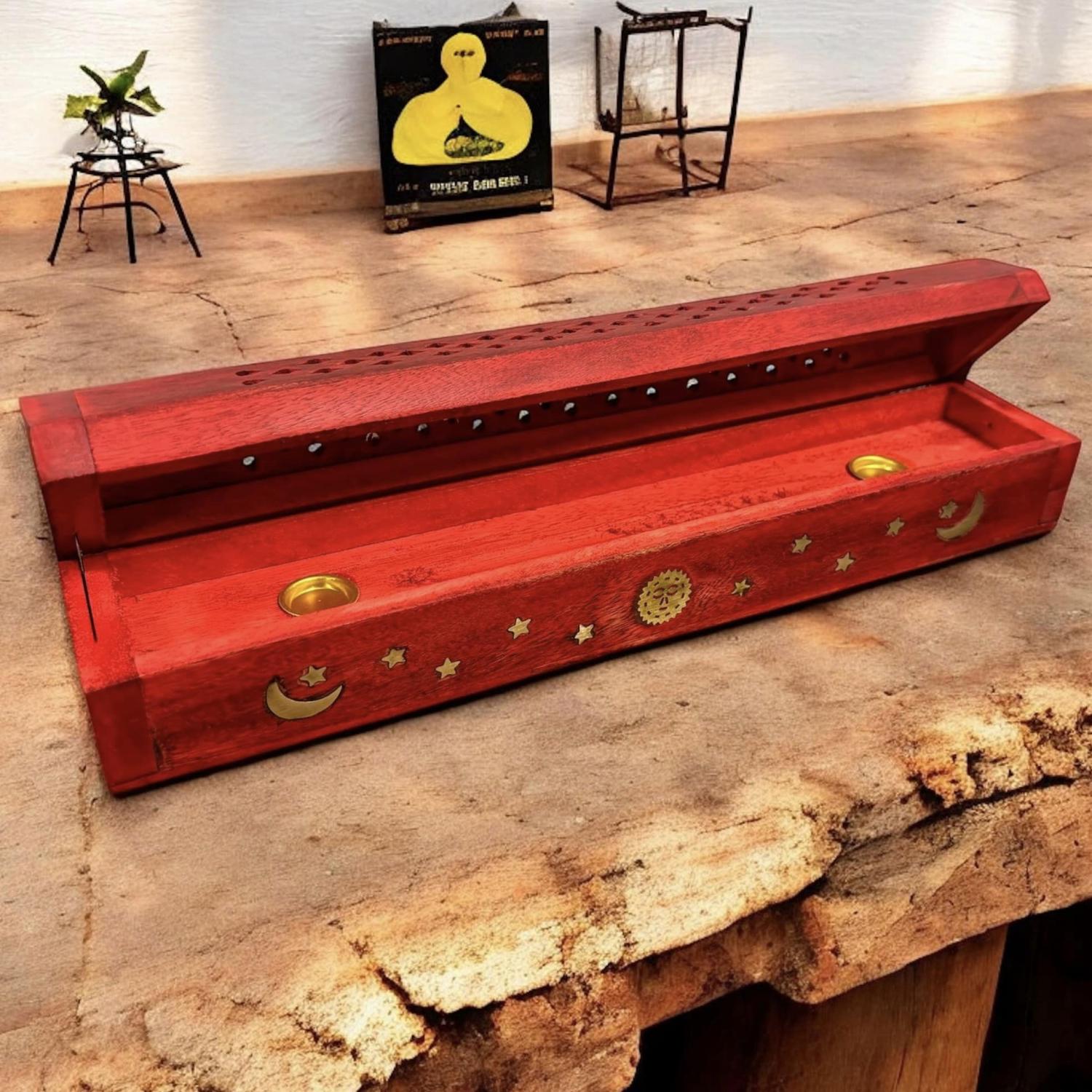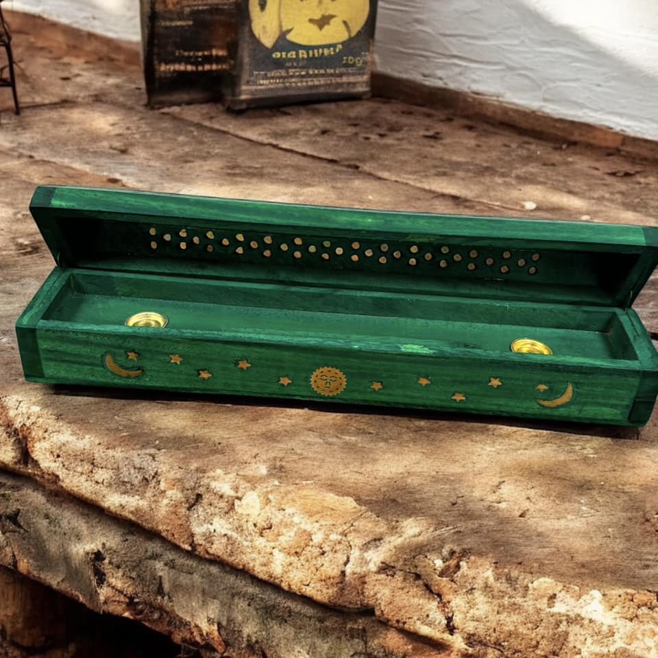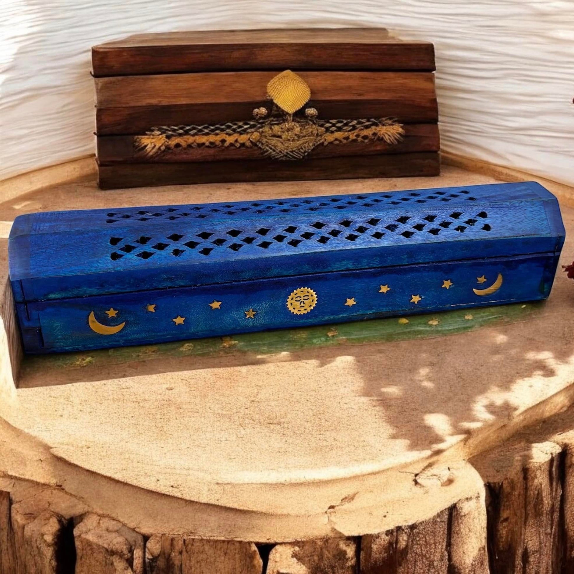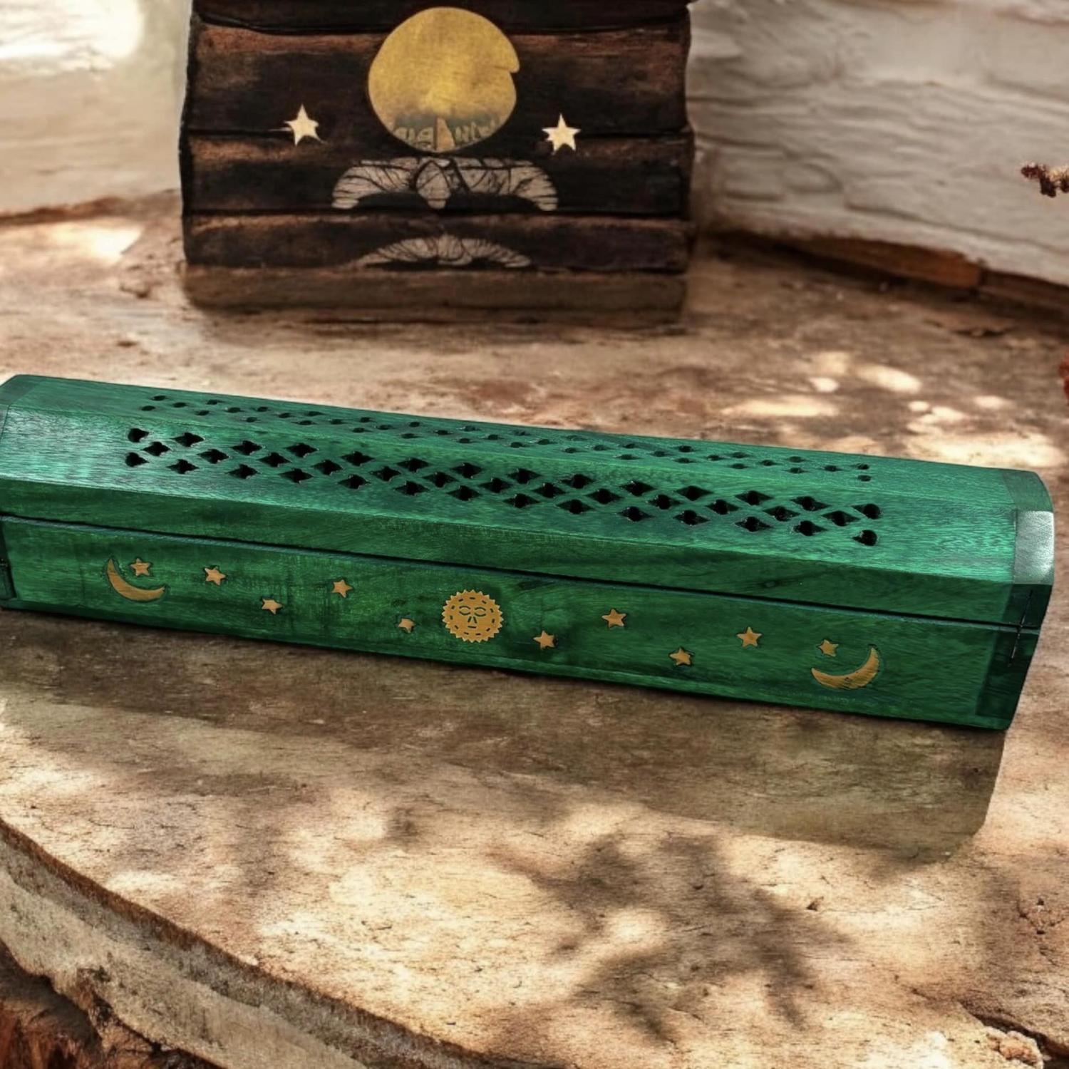 porte encens en bois très pratique pour les encens en bâtonnets et cônes. Coffret en bois de 30 cm coloris au choix