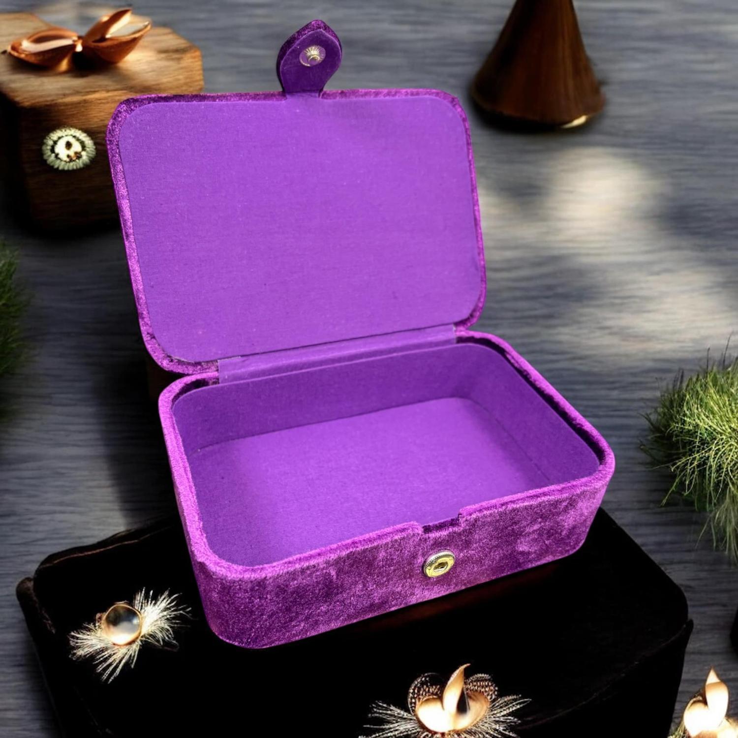 Mesurant 11x15,5x5 cm, ces boîtes sont idéales pour les bijoux, les cartes de tarot, les cristaux et autres objets précieux. Une petite sangle avec un bouton pression maintient vos effets personnels en sécurité.