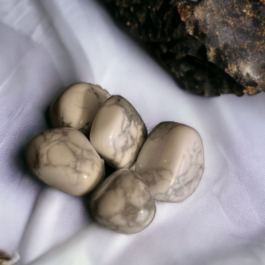 Howlite à l'unité : Poids 10-15 grammes. La pierre howlite combat toutes les formes de mal-être au niveau du mental. Ainsi, elle réduit la tristesse, l’hypersensibilité, le stress et l’angoisse. Placée dans une chambre, sous un oreiller ou sur une table de chevet, elle favorise le sommeil profond et réparateur. Pierre de sagesse, la howlite apporte beaucoup de soutien et de réconfort lorsque vous traversez des moments difficiles. Porter une pierre howlite peut vous aider à sortir de votre zone de confort et à surmonter vos peurs. Elle vous offre une nouvelle source de motivation pour exécuter votre travail et pour réaliser tous vos projets, même les plus ambitieux. Lorsque vous traversez une période de bouleversement ou de changement, elle vous aide à trouver des solutions et à prendre les bonnes décisions.