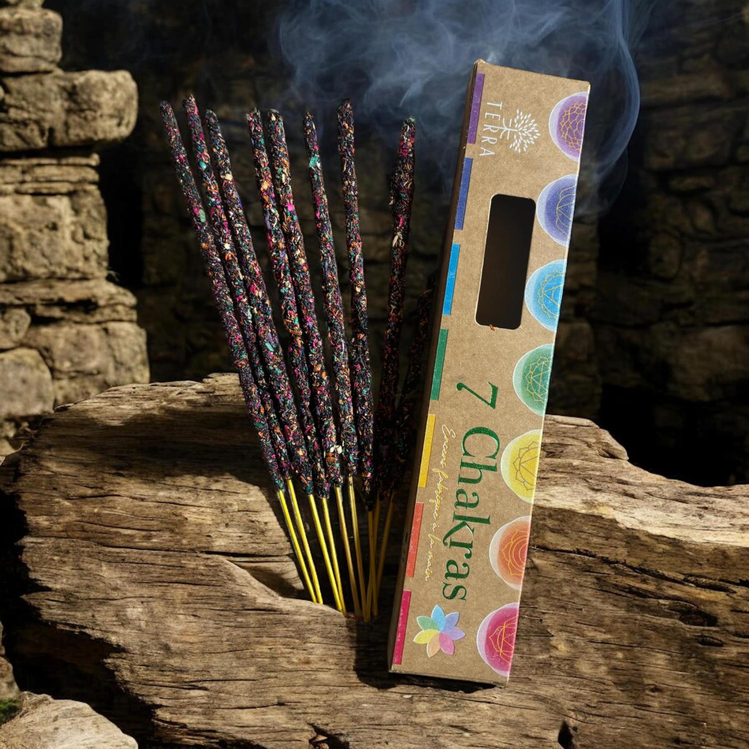 1 boîte de 9 bâtonnets d'encens 7 chakras de la marque Terra idéal pour harmoniser l'ensemble des chakras. Encens Terra : L'essence même de l'expérience olfactive! Eveillez vos sens à une symphonie aromatique pure et authentique avec Terra, une collection d'encens naturels exempts de charbon. Laissez-vous transporter par une invitation à la découverte olfactive, où chaque senteur exhale l'essence même de la nature. Un ballet de fragrances raffinées Savourez une myriade d'arômes envoûtants. Chaque bâtonnet brûle pendant environ 50 minutes, offrant une longue et voluptueuse expérience parfumée. Un écrin de sérénité pour chaque instant Créez une ambiance relaxante pour la méditation, le yoga ou la lecture. Parfumez votre intérieur d'une odeur subtile et agréable pour un moment de détente. Offrez un cadeau original et raffiné à vos proches. Terra, une invitation à l'évasion sensorielle, où chaque note olfactive raconte une histoire unique.