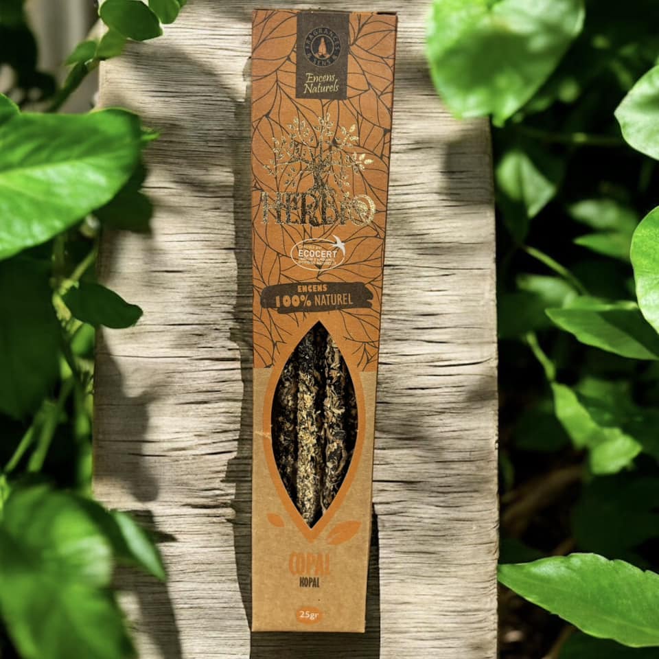 Boîte de 10 bâtonnets d'encens Herbio au copal. Le parfum du copal purifie l'air et apporte une énergie vivifiante et revitalisante.