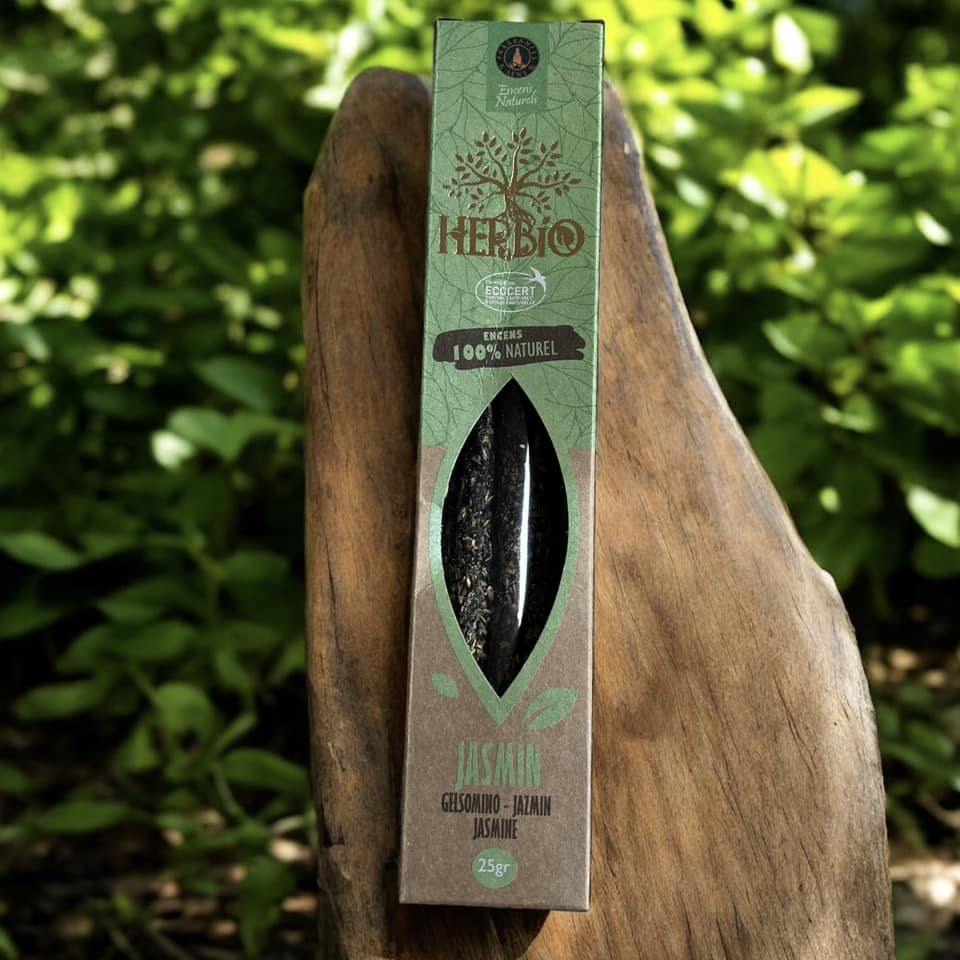 Boîte de 10 bâtonnets d'encens Herbio jasmin. Son arôme délicat apporte un sentiment de quiétude et d'harmonie. Choisir Herbio c'est se rapprocher de la nature et entrer en connexion avec elle.