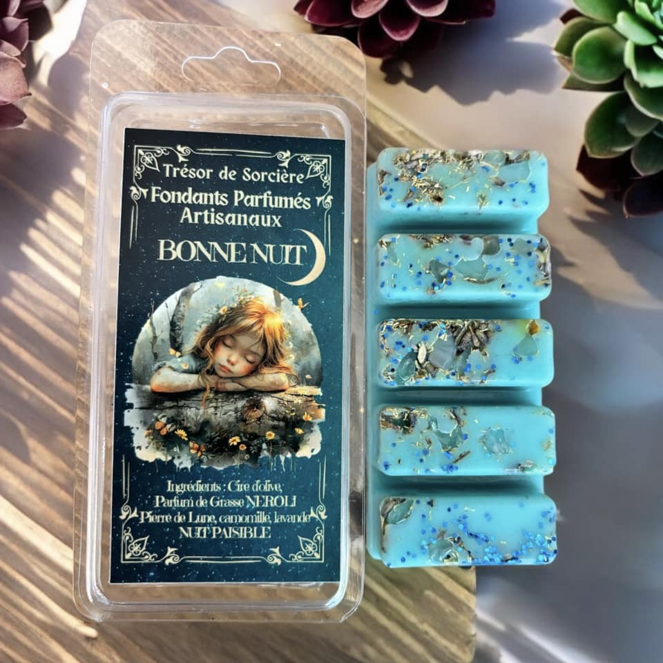 Le doux parfum de Néroli des fondants "bonne nuit" deviendra très vite votre allié pour favoriser apaisement et endormissement.