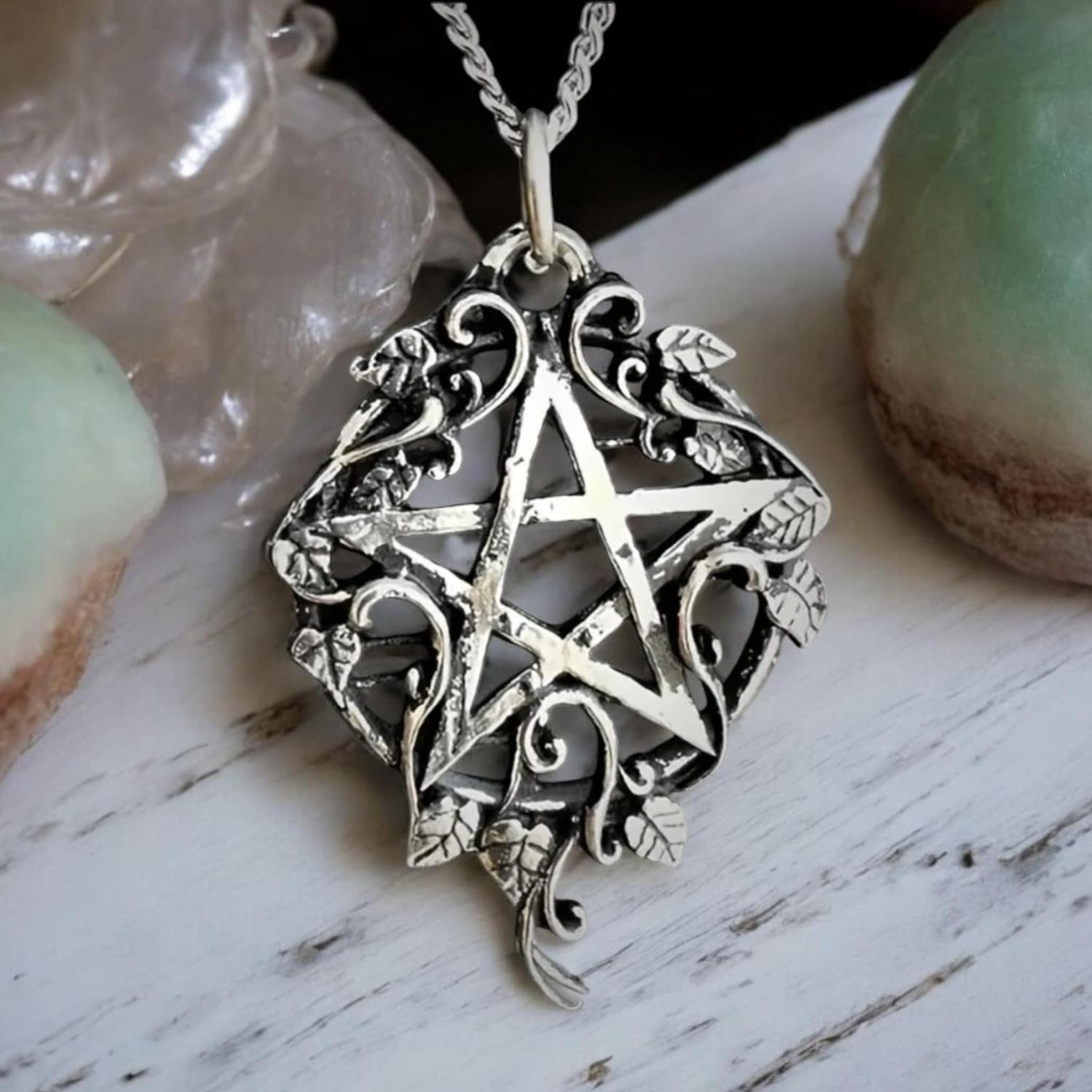 Pendentif pentacle, talisman pentacle feuilles