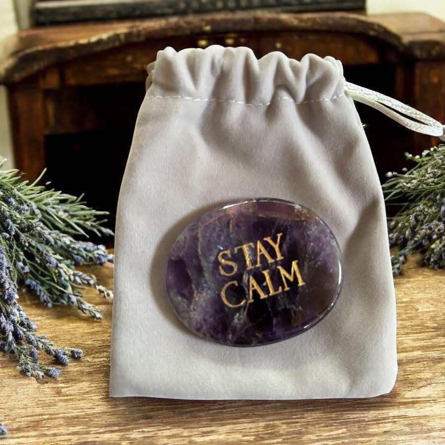 Toucher doucement la pierre d'inquiétude en améthyste pour réduire l'anxiété lorsque vous vous sentez stressé, elle créera une forte vibration d'apaisement. L'améthyste aide à construire un pont entre notre corps et notre esprit, connecte l'intuition avec une plus grande sagesse, offre plus de possibilités d'éveil spirituel, également très utile pour favoriser le sommeil ou la méditation.