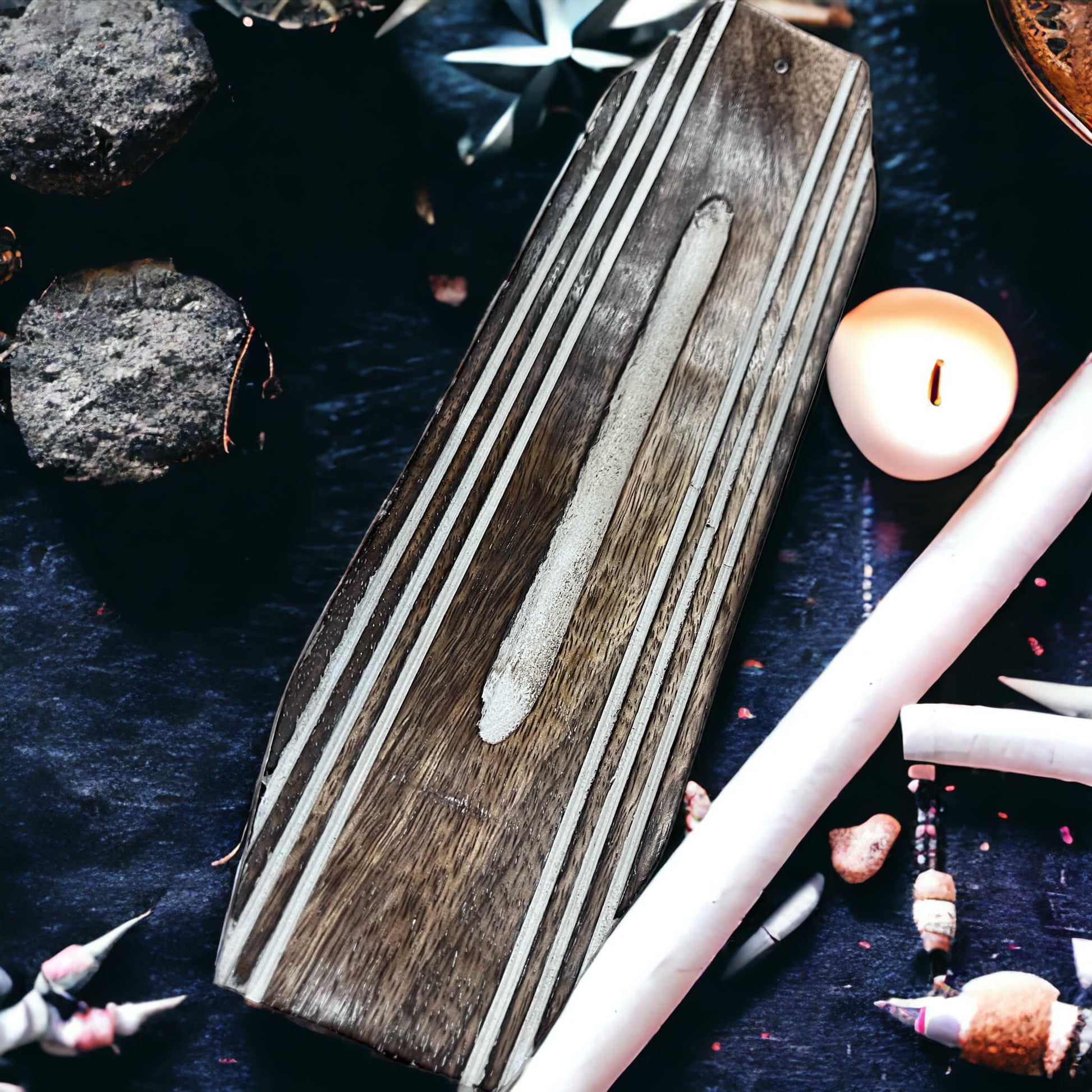 Porte encens en bois large de 6 cm sur 28 cm de longueur