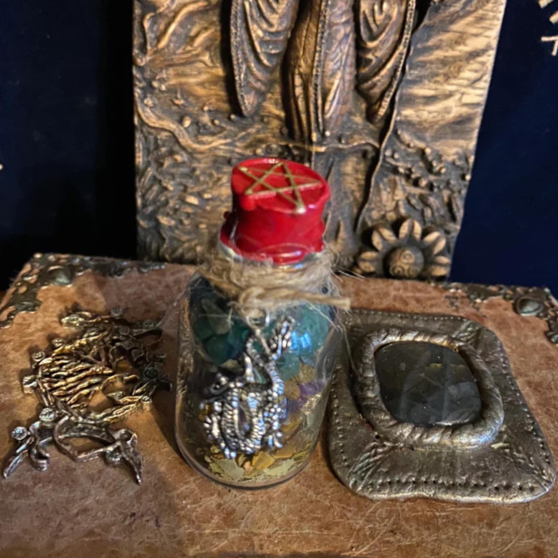 LES DELAIS DE LIVRAISON PEUVENT ËTRE RALLONGES SUR CET ARTICLE EN FONCTION DE LA DATE DE VOTRE COMMANDE. MES CREATIONS DE SPELL JARS SONT FAITES SELON UN RITUEL QUI IMPLIQUE UN TRAVAIL AVEC UNE PHASE LUNAIRE BIEN PRECISE.