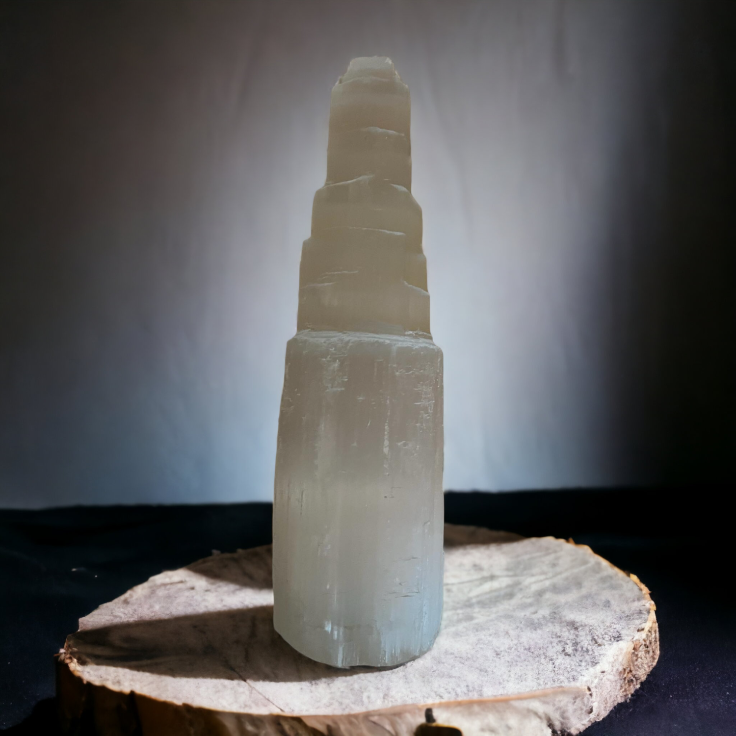 Cette tour de sélénite est esthétique et dotée du pouvoir d'émettre de belles et douces énergies dans n'importe quelle pièce de la maison.